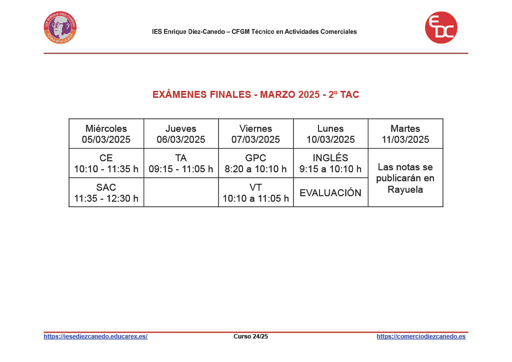 EXÁMENES FINALES DE MARZO 2º ACTIVIDADES COMERCIALES